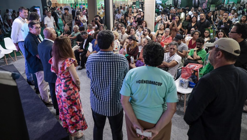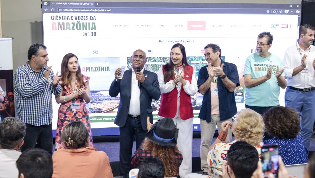 A cerimônia de encerramento das atividades da Universidade Federal do Pará (UFPA) nas Zonas Azul e Verde da COP 30, na última sexta-feira, 21, foi marcada pelo lançamento de uma edição especial da série de publicações “Ciência e Vozes da Amazônia na COP30”, no Pavilhão Crea-Pará, da Zona Verde, no Parque da Cidade. O movimento editorial, iniciado em fevereiro de 2025, chegou ao seu sétimo número destacando a diversidade do pensamento amazônico