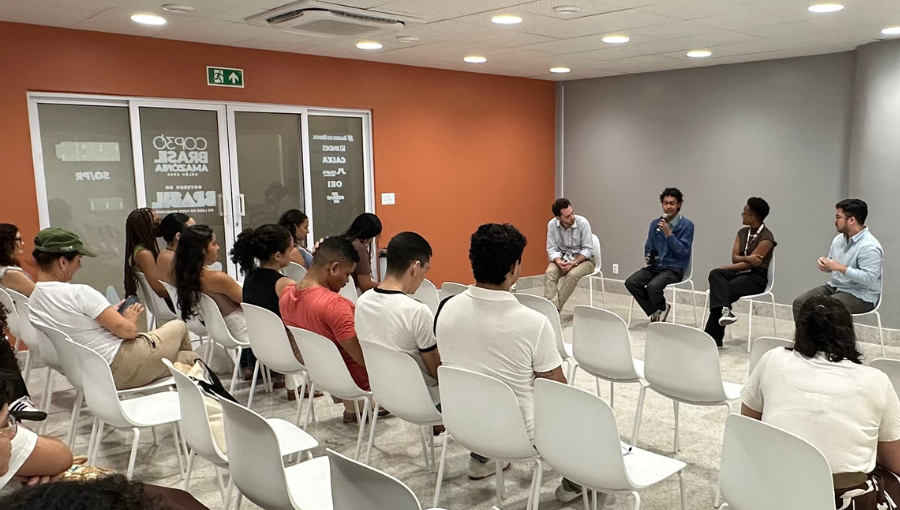 Com o intuito de debater como as oportunidades de educação internacional são cruciais para amplificar as vozes de jovens amazônidas no cenário climático internacional, o painel ocupou o Ateliê 3 do Pavilhão do Pará, na Green Zone da COP 30, no Parque da Cidade.