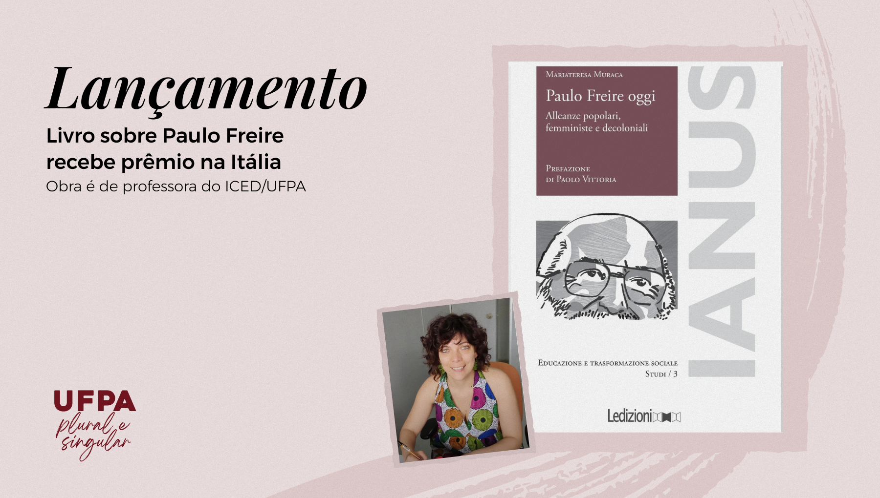 A professora do Instituto de Ciências da Educação da Universidade Federal do Pará – (ICED/UFPA), Mariateresa Muraca, lançou o livro “Paulo Freire oggi – Alleanze popolari, femministe e decoloniali” (Ledizioni, Milano, 2025), na Itália. A obra reúne ensaios e artigos científicos, publicados em inglês, português, espanhol e italiano, ao longo dos últimos dez anos da carreira da docente, e receberá o “Prêmio Italiano de Pedagogia” da Sociedade Italiana de Pedagogia (SIPED), que representa o mais importante reconhecimento científico no campo da pedagogia em Itália.