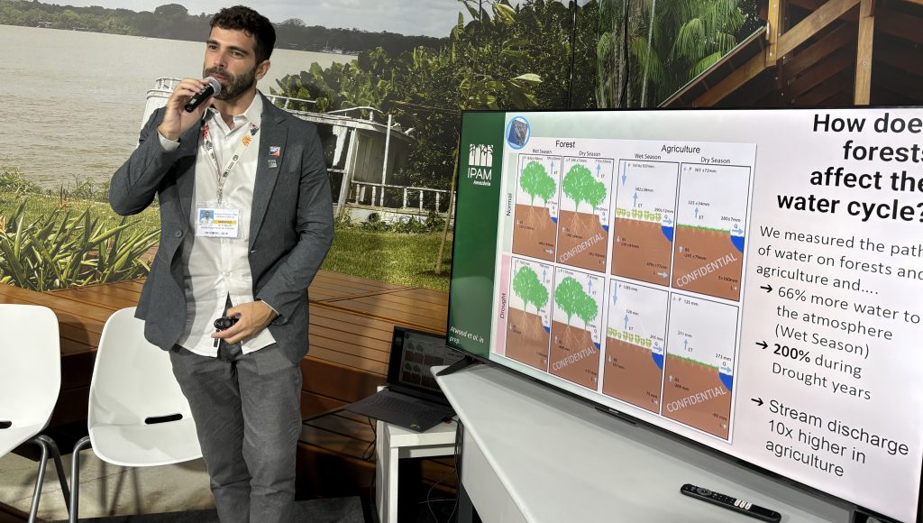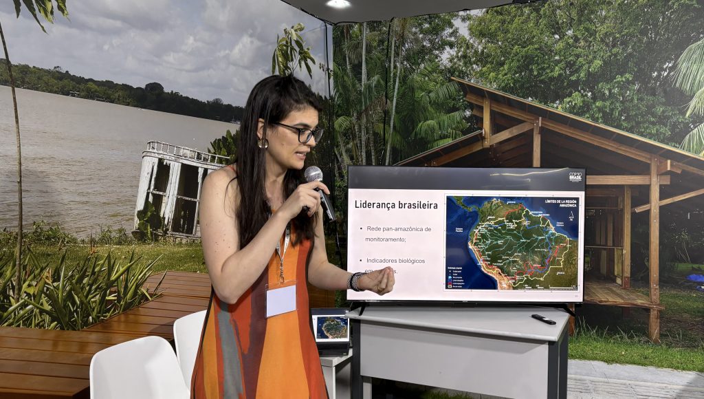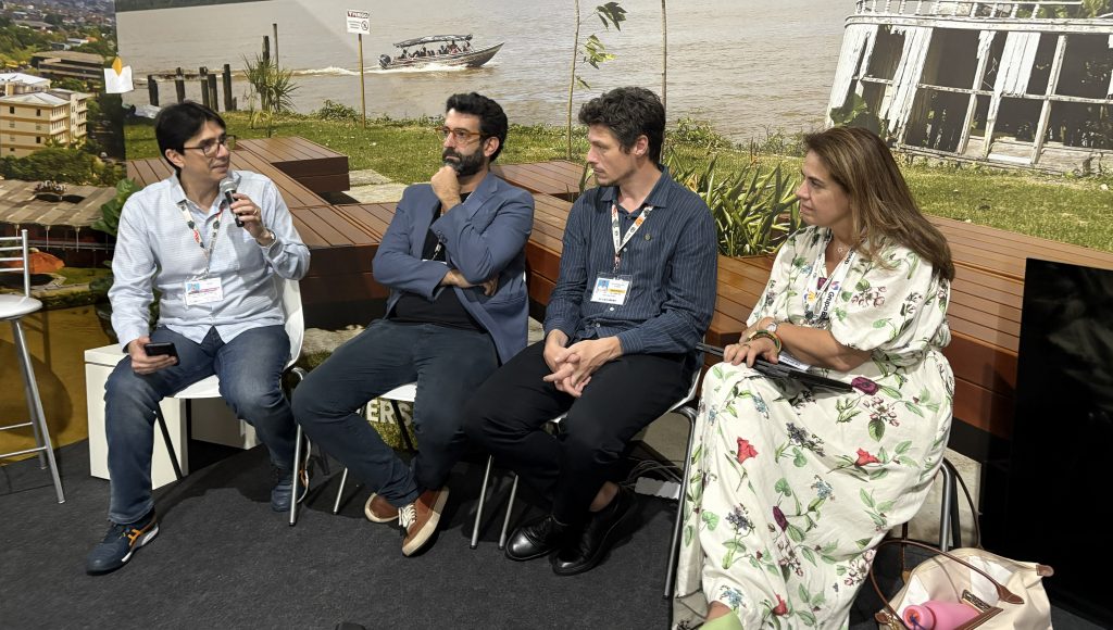 Finalizando o dia, o estande contou com o Painel “Biodiversidade aquática e segurança hídrica: águas que conectam”, moderado pelo professor e pesquisador Leandro Juen, do Movimento Ciência e Vozes da Amazônia, e com os painelistas Thaisa Michelan (UFPA/PPBio-AmOr), Luciano Montag (UFPA/PELD e INCT) e Jérome Murienne (CNRS).